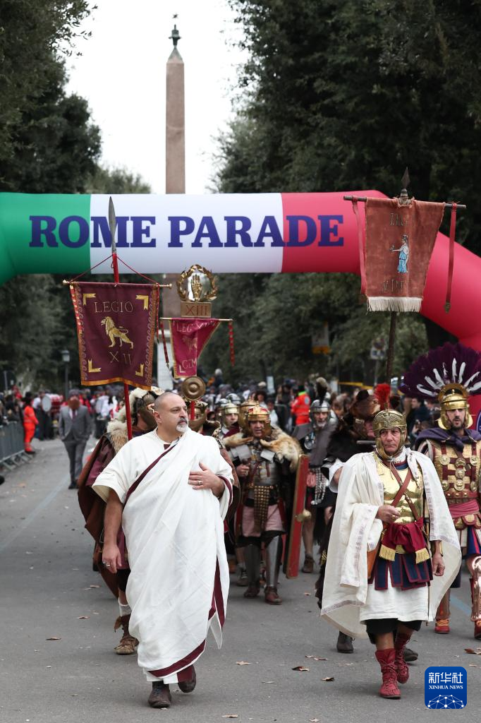 2026年1月1日,在意大利罗马,演员身着古罗马服饰参加新年游行庆祝活动。