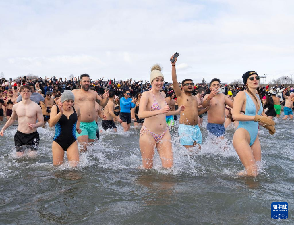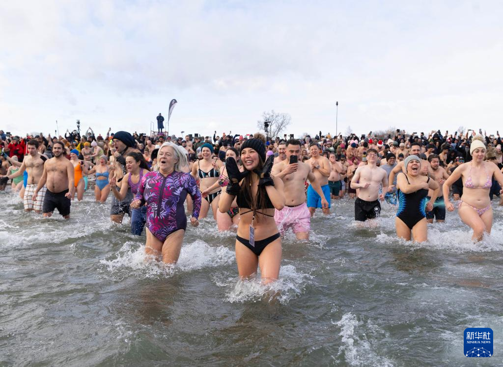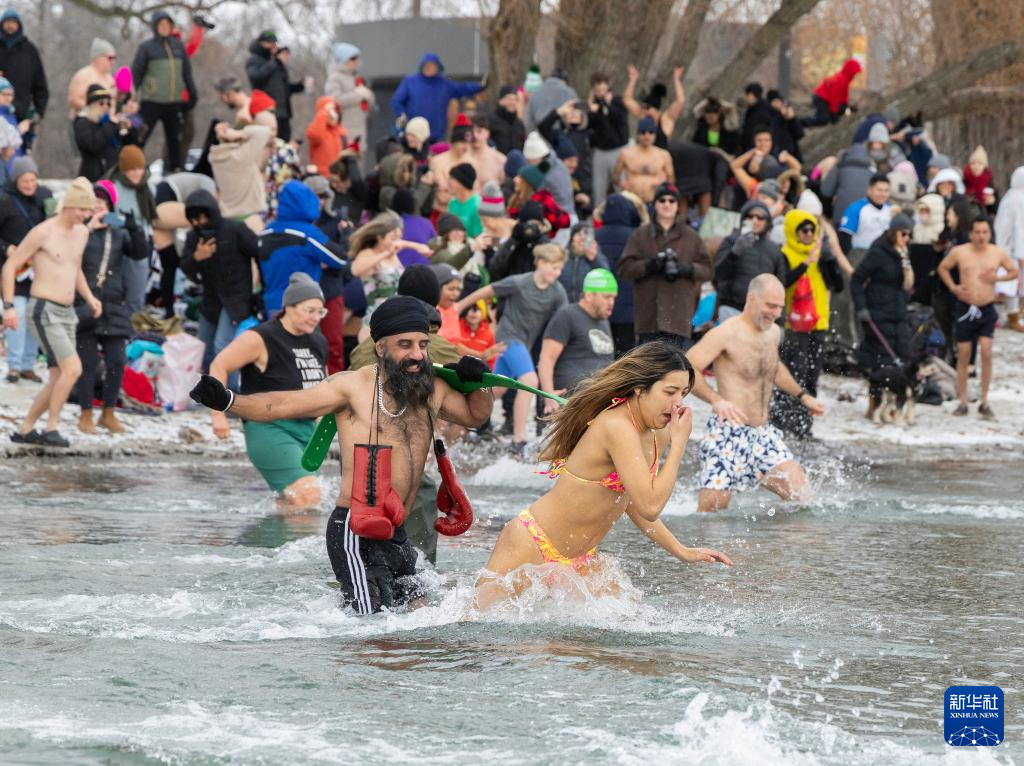 2026年1月1日,人们在加拿大多伦多的安大略湖边参加“北极熊冬泳”活动,欢庆新年。