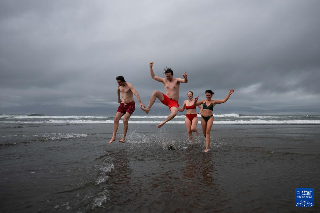 2026年1月1日,在美国加利福尼亚州旧金山,人们参加戏水活动迎接新一年到来。