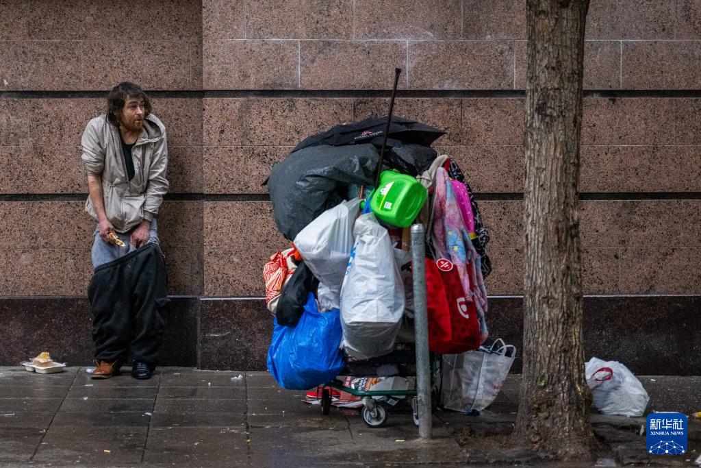 2025年12月31日,无家可归者在美国加利福尼亚州旧金山街头避雨。