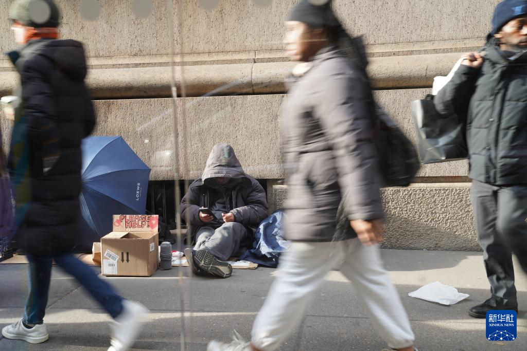 2025年12月31日,无家可归者坐在美国纽约的街头寻求帮助。