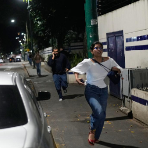 1月3日,在委内瑞拉首都加拉加斯,人们听到爆炸声后在街道上奔跑。