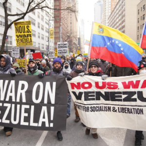 当日,近千名民众在美国纽约举行集会游行,抗议美国对委内瑞拉实施军事打击。
