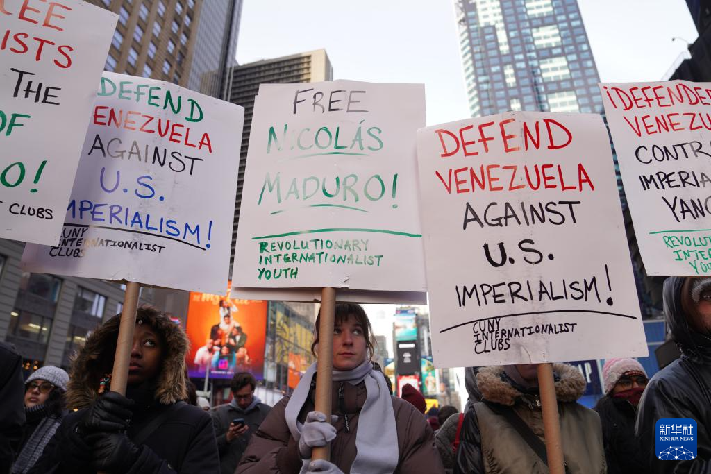 纽约民众抗议美国空袭委内瑞拉-新华网