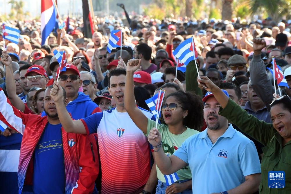 1月3日,在古巴首都哈瓦那,民众参加集会活动谴责美国军事入侵委内瑞拉。
