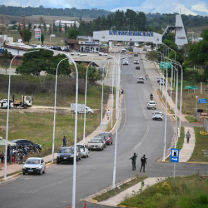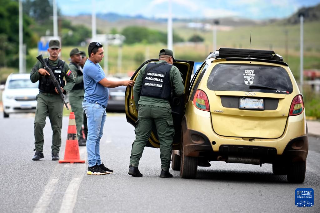 1月6日,在巴西北部罗赖马州帕卡赖马,委内瑞拉玻利瓦尔国民警卫队成员在巴西和委内瑞拉边境检查车辆。