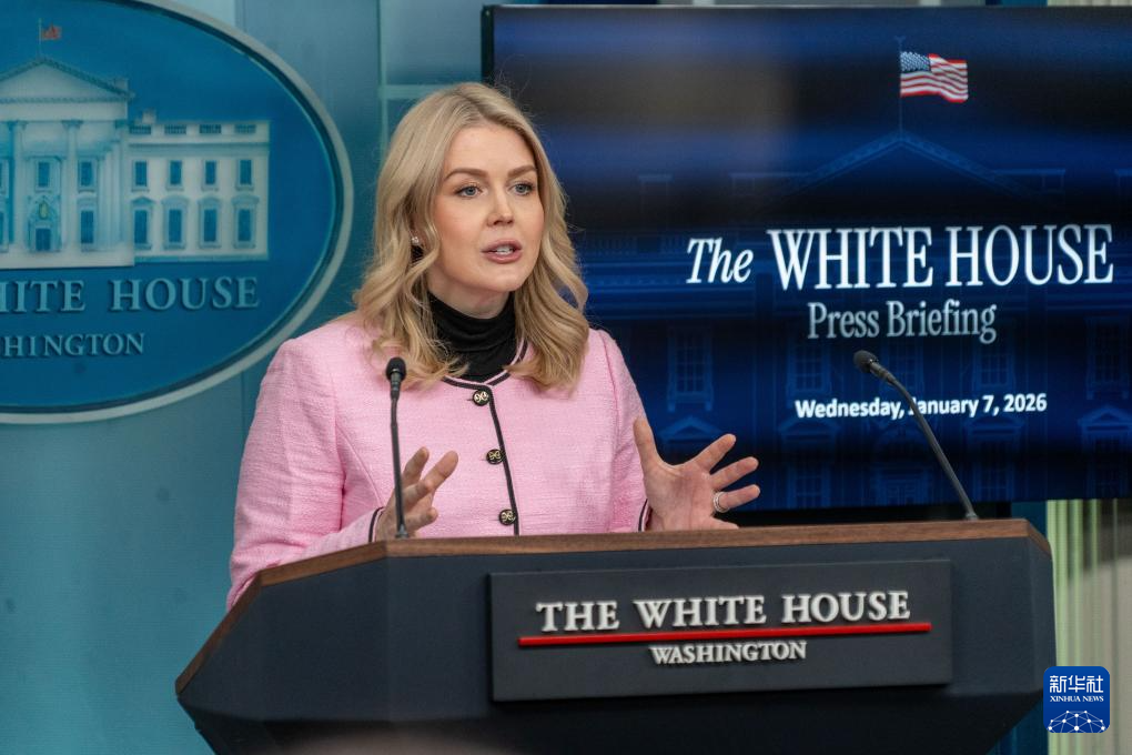 1月7日,在美国首都华盛顿白宫,白宫新闻秘书莱维特出席记者会。