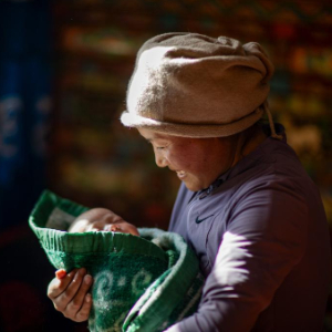 2025年1月8日,次仁拉姆抱着自己刚满月的孩子格桑巴宗。