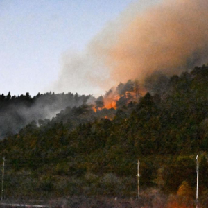 日本山梨县扇山发生山火