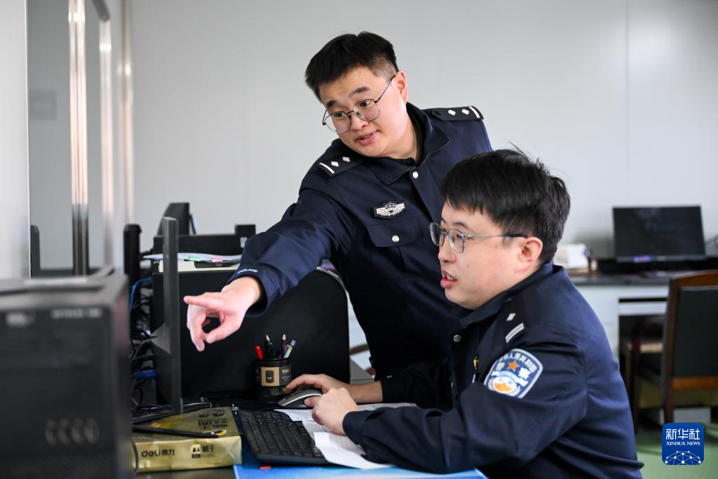 1月7日,锡林郭勒盟公安局刑侦支队刑事技术大队的许锐佳(左)、乌达木在锡林郭勒盟公安局实验室比对DNA数据。