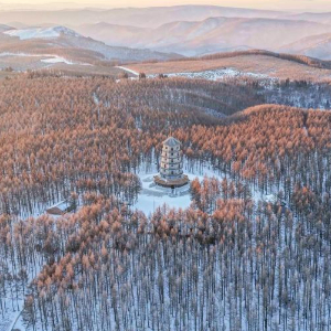 1月10日拍摄的塞罕坝国家级自然保护区一景(无人机照片)。