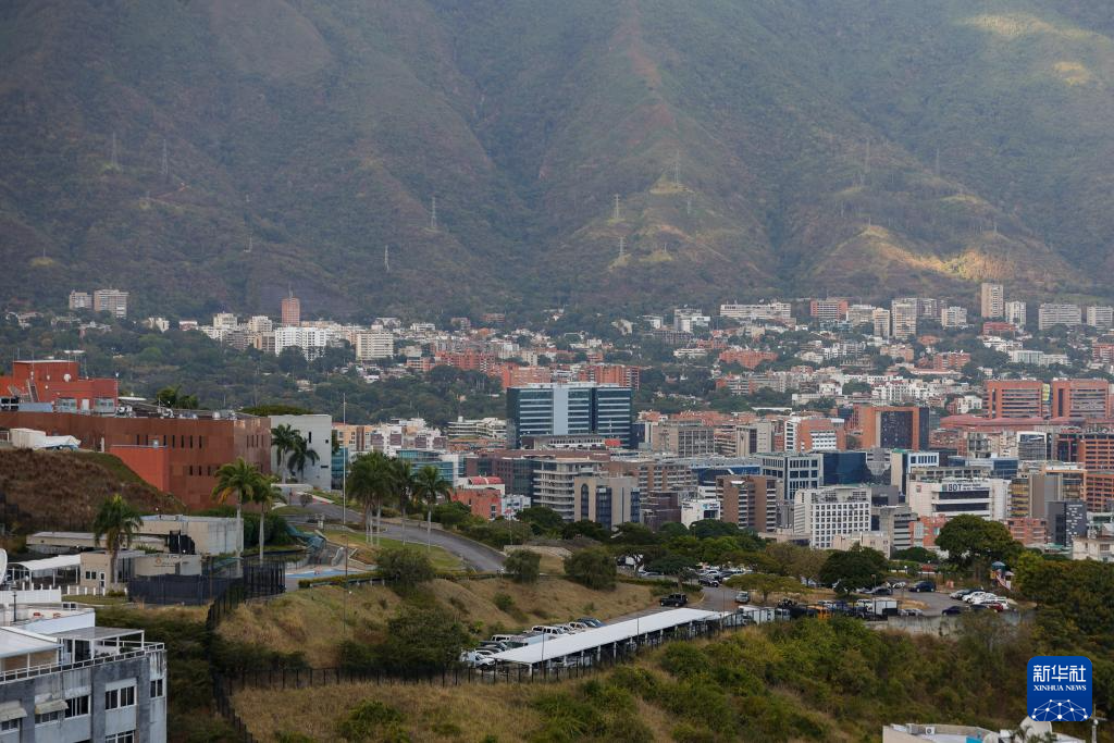 这是1月9日在委内瑞拉首都加拉加斯拍摄的美国驻委内瑞拉大使馆馆舍(画面左侧)。