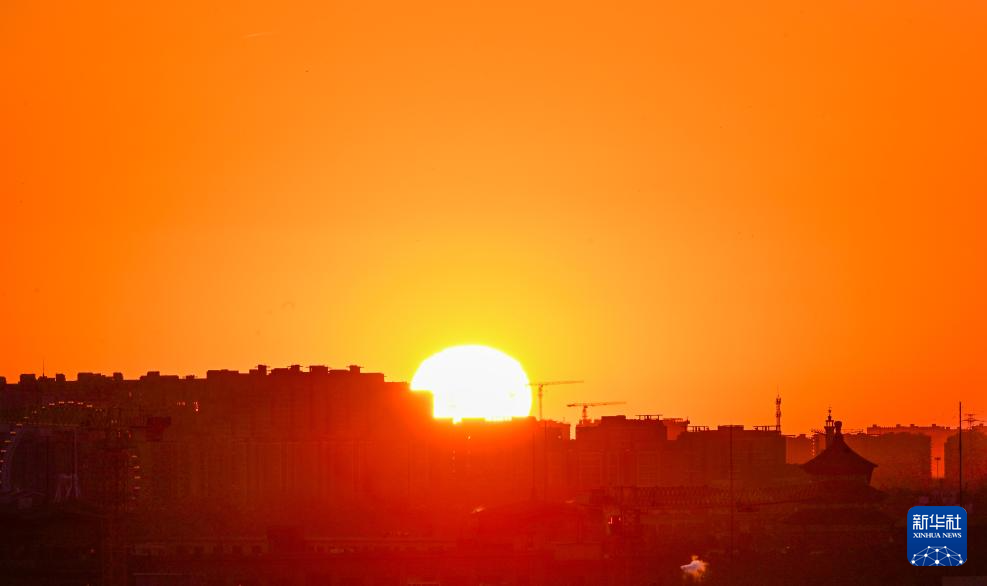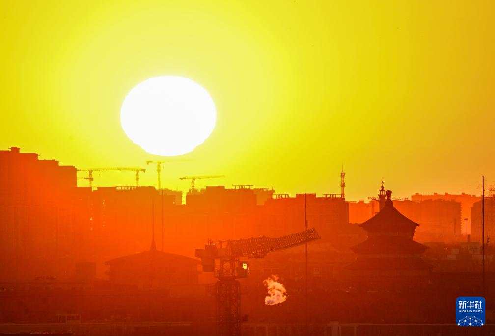 1月11日清晨,北京风力减弱,城市天际线沐浴在金色朝阳中,美若画卷。