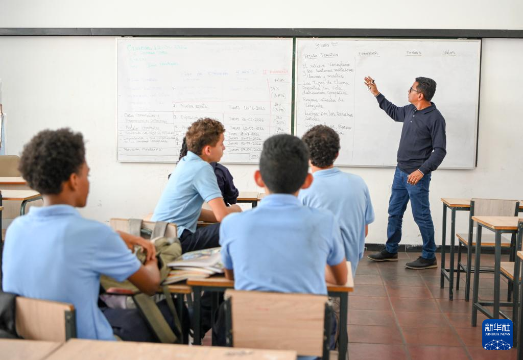 1月12日,在委内瑞拉首都加拉加斯一所公立学校,学生们在上课。