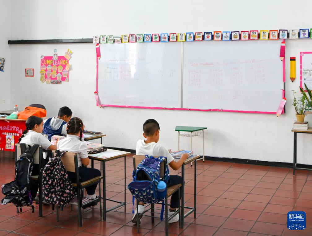 1月12日,在委内瑞拉首都加拉加斯一所公立学校,学生在教室自习。