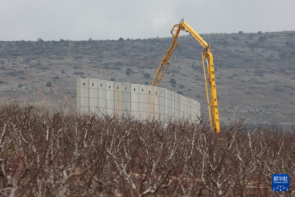 1月12日,在以色列-黎巴嫩边境沿线以色列一侧,施工团队在建设混凝土隔离墙。