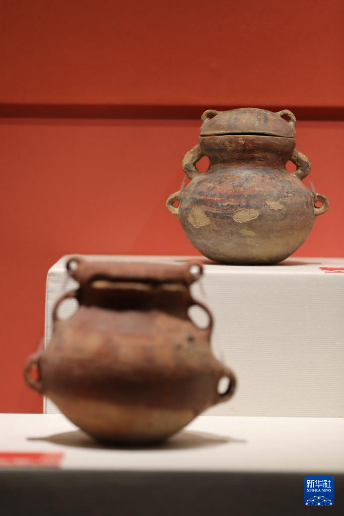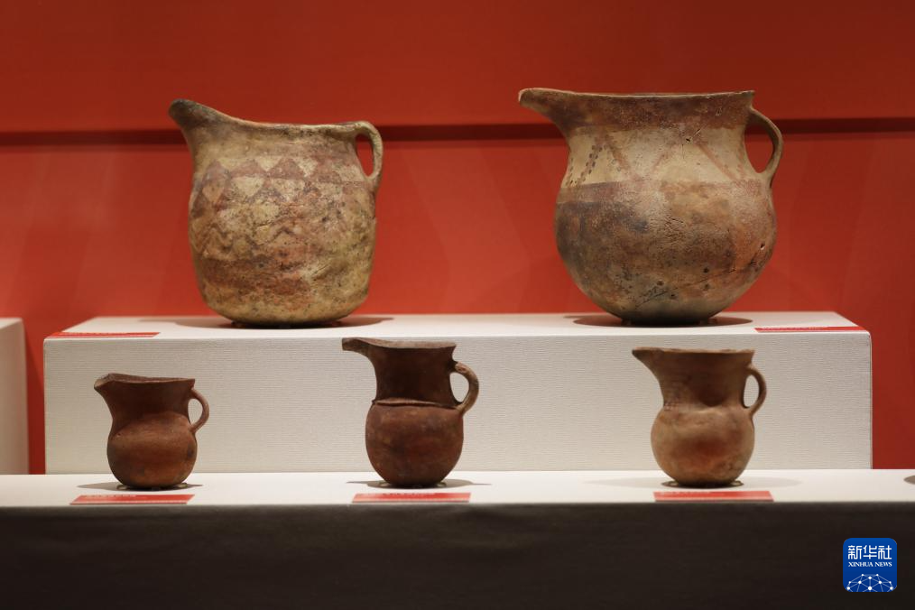 这是1月13日在甘肃省博物馆拍摄的“从黄河到天山——史前彩陶的西渐之路”文物展展出的彩陶。