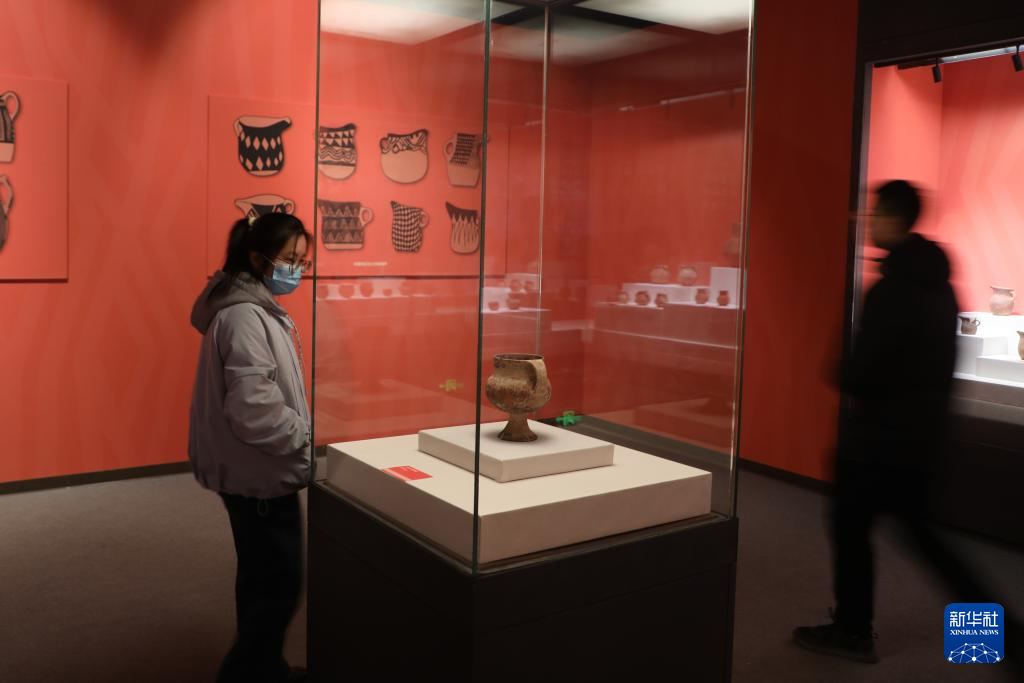 1月13日,观众在甘肃省博物馆参观“从黄河到天山——史前彩陶的西渐之路”文物展。