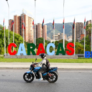 1月13日,在委内瑞拉首都加拉加斯,摩托车行驶在大街上。