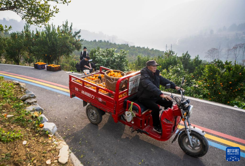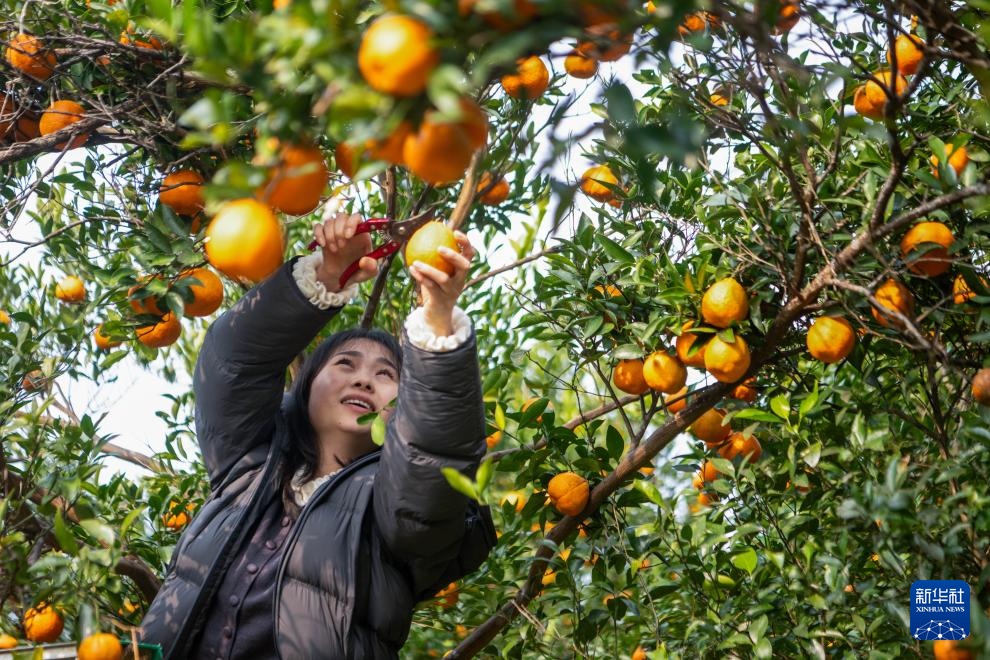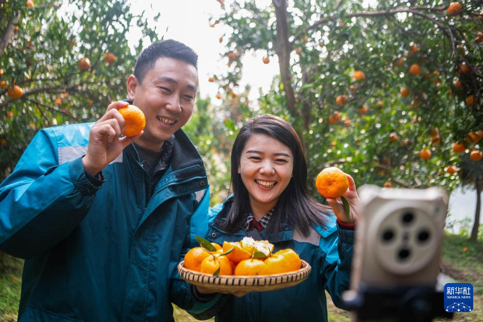 近日,重庆市黔江区阿蓬江沿岸数千亩柑橘林迎来收获季,当地通过举办采摘体验、线上直播等活动,拓宽柑橘销售渠道,推动柑橘出村进城,有效促进农民增收和乡村产业振兴。