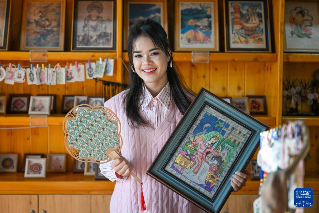 “每当画笔落在桑皮纸上,我都能感觉到,自己连起了家乡的过去和未来。”2025年从新疆艺术学院视觉传达设计专业毕业的穆耶赛尔,选择回到家乡,成为一名桑皮纸文创产品设计师。她的工作台上,摆满了自己设计的桑皮纸装饰画、冰箱贴、艺术台灯等产品,每一件都注入了她对于传统文化的理解与巧思创新的尝试。