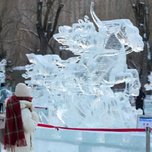 入冬以来,在哈尔滨市兆麟公园举办的第52届哈尔滨冰灯艺术游园会吸引众多游客和市民前来参观游览。游园会建设用冰量约2300立方米,用雪量约800立方米,采用“一轴六区”空间布局,打造了超过300处冰雪雕景观。
