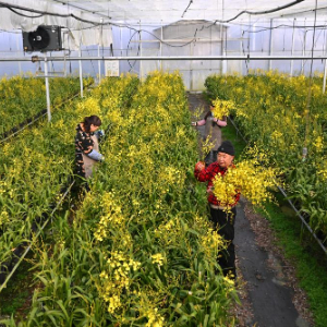 1月15日,在位于周宁县浦源镇的福建馨慧兰园艺有限公司,工人分拣包装文心兰。