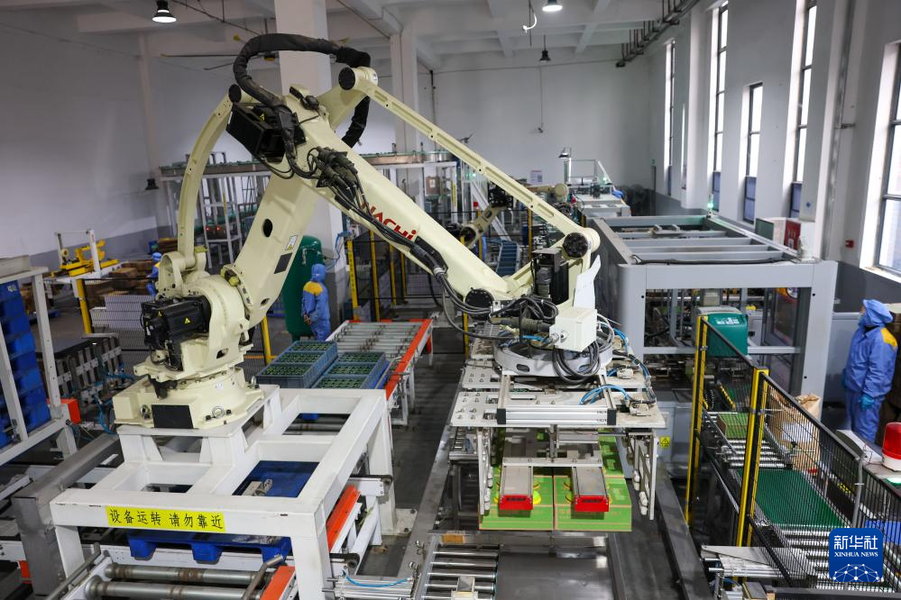 1月15日,在四川川娃子食品有限公司智能生态工厂,工业机器人在搬运烧椒酱成品。