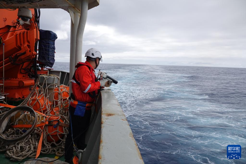 船时1月16日,“雪龙”号大洋队队员手持发射器,向海中投放抛弃式温深仪。