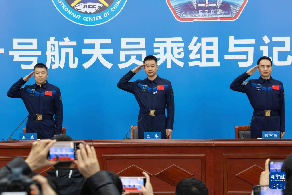 1月16日下午,中国航天员科研训练中心在北京航天城举行神二十乘组与记者见面会,航天员陈冬、陈中瑞、王杰太空归来后首次公开亮相。