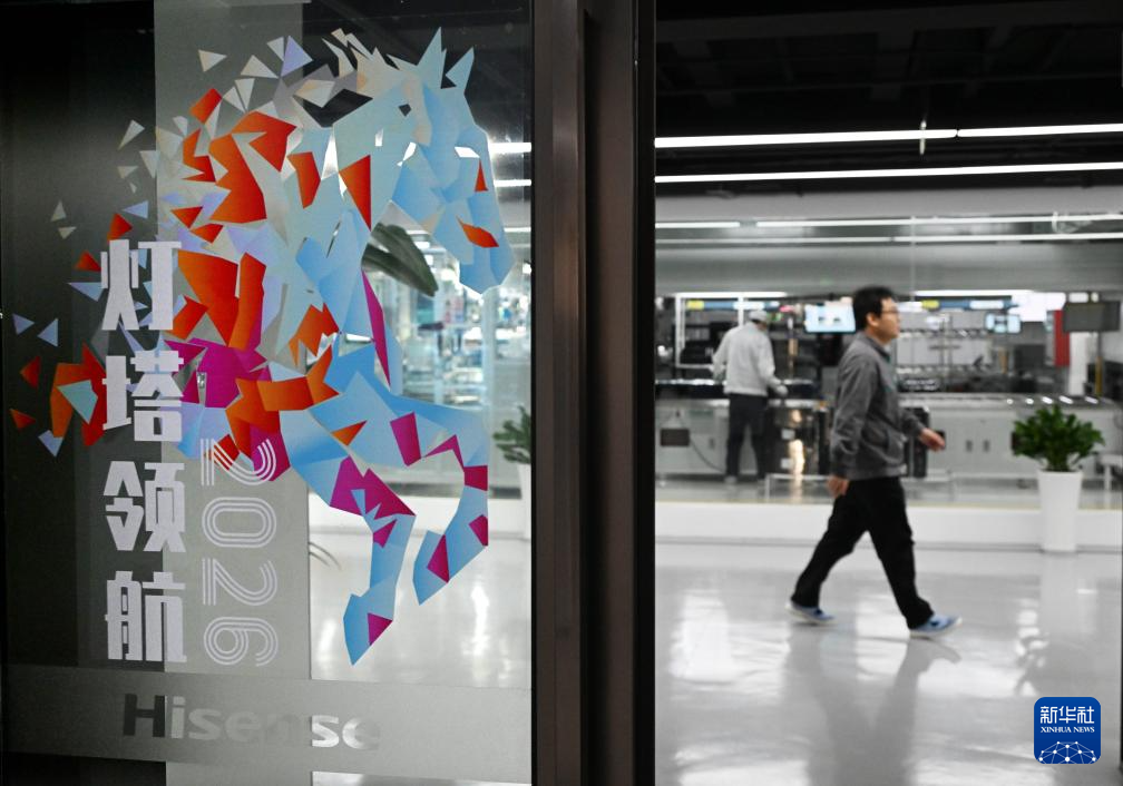 1月13日,一名海信视像青岛工厂员工从生产线旁经过。