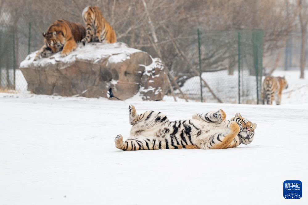 这是1月12日在位于哈尔滨市的黑龙江东北虎林园散放区拍摄的东北虎。