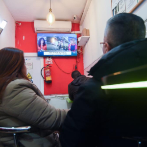 1月19日,人们在西班牙马德里一家餐厅内观看高速列车脱轨相撞事故相关新闻。
