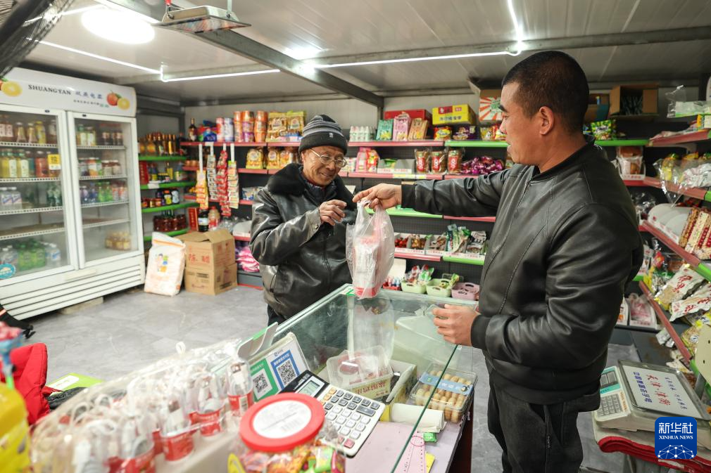 1月20日,村民在祝家沟村的一个小卖店中选购商品。