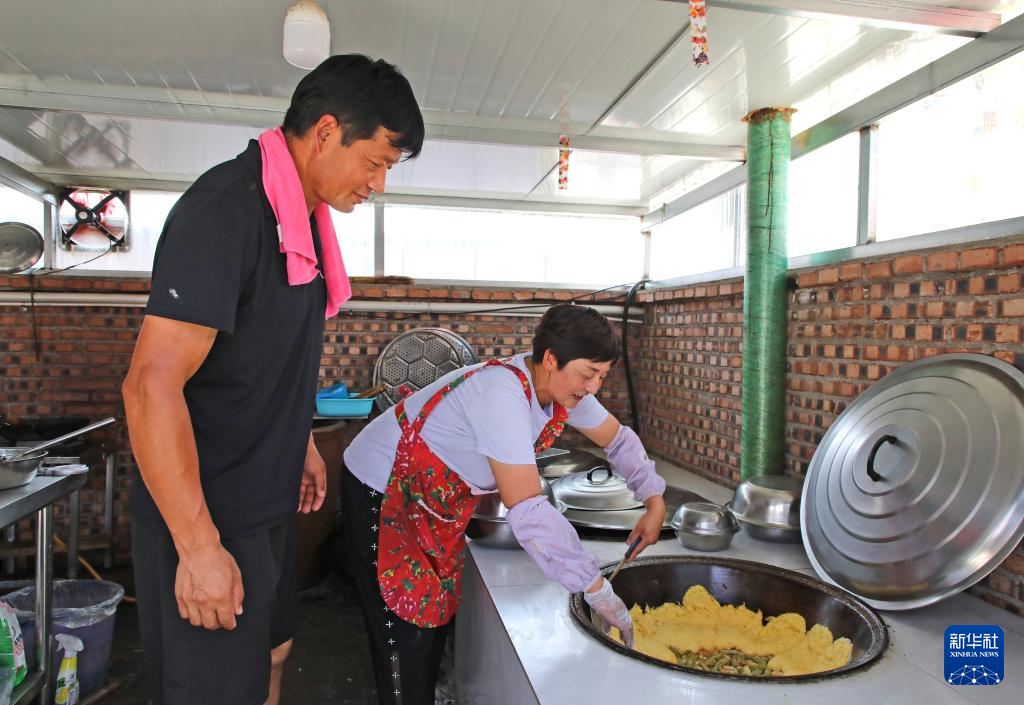 村民朱西存与媳妇唐凤杰在灶台前为来农家乐的客人准备午餐(2025年7月2日摄)。