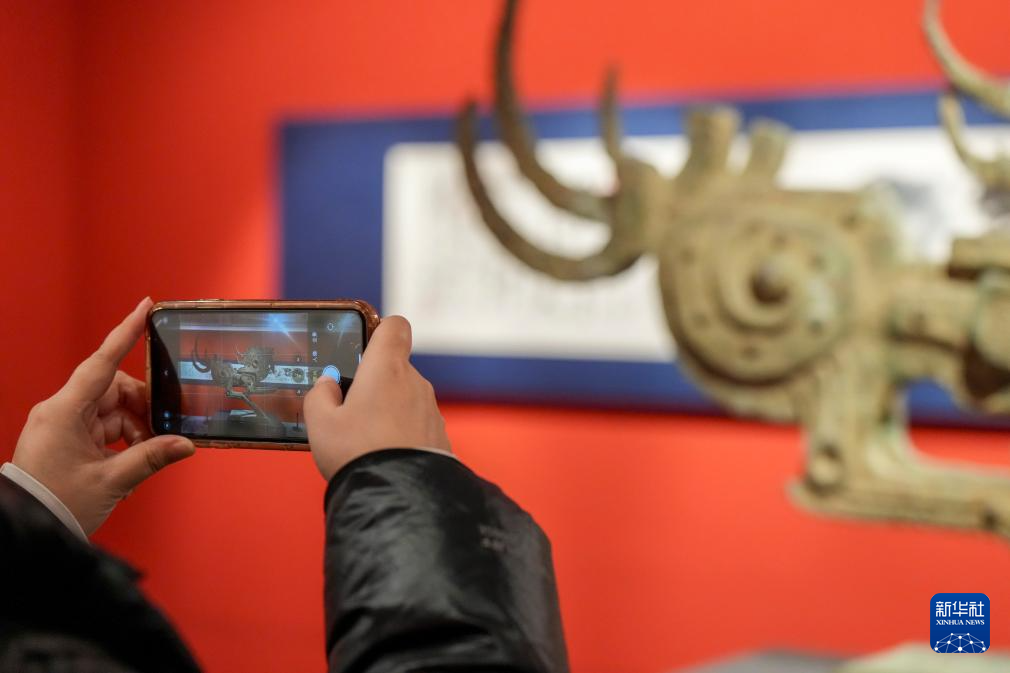 1月22日,参观者在哈尔滨市博物馆“不宗凡马——韩美林马年艺术展”上拍摄参展作品。