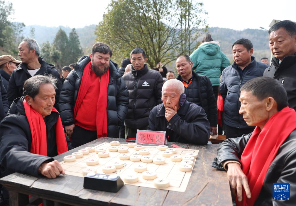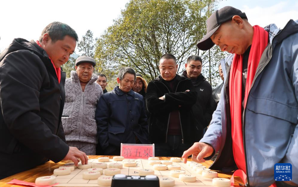 1月23日,象棋爱好者在平利县西河镇磨沟村参加“乡村棋王争霸赛”。