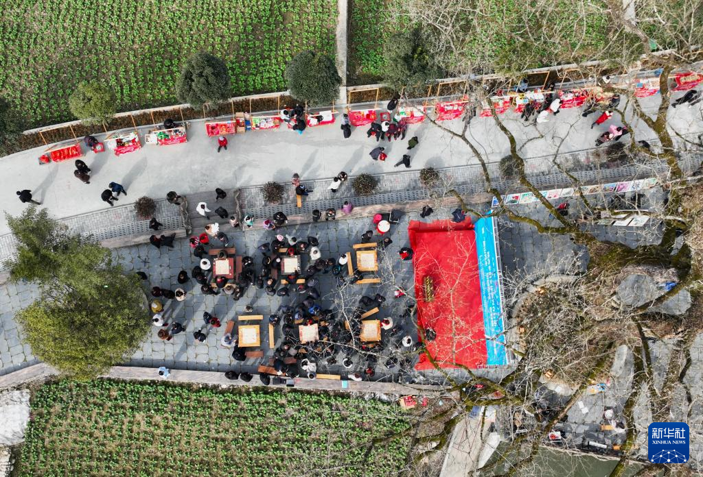 1月23日,象棋爱好者在平利县西河镇磨沟村参加“乡村棋王争霸赛”(无人机照片)。