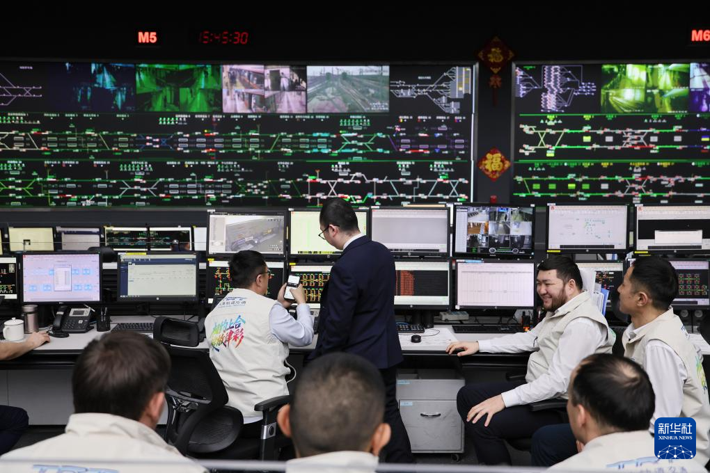 1月23日,哈萨克斯坦学员在天津轨道交通集团调度指挥中心学习。