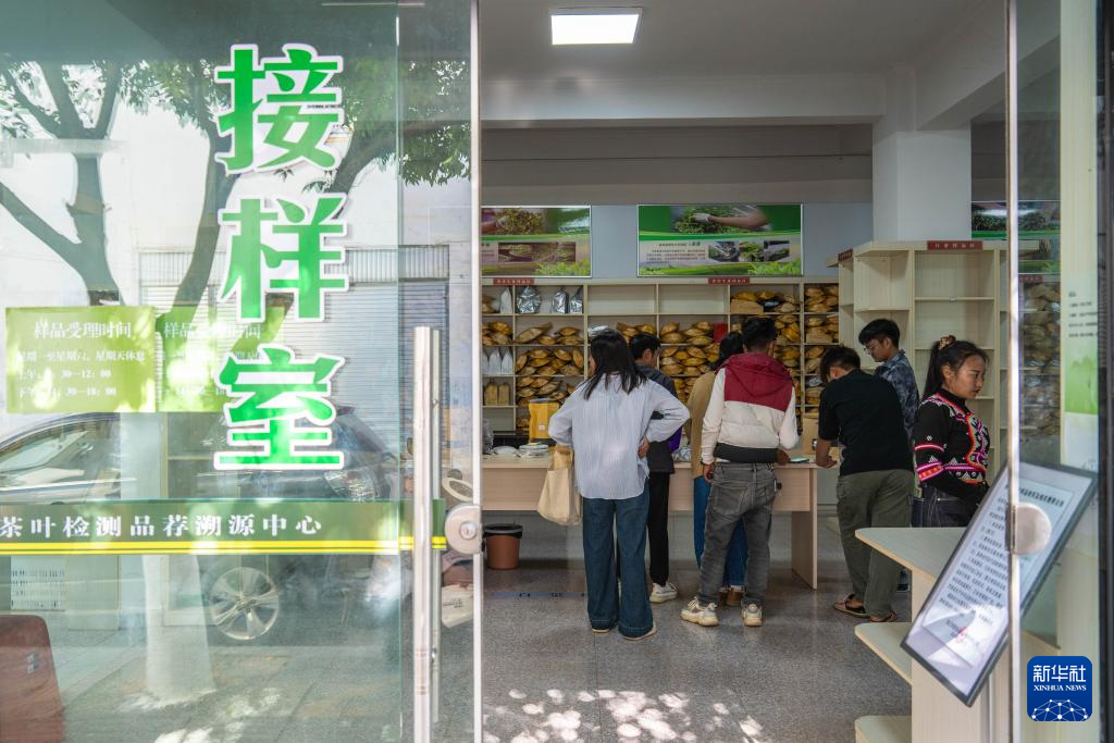 1月23日,茶农在临沧市双江县茶叶检测品荐溯源中心送样、登记茶叶。