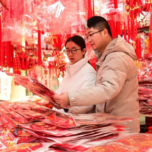 1月24日,市民在西安市新城区西北小商品年货大集上选购节庆饰品。