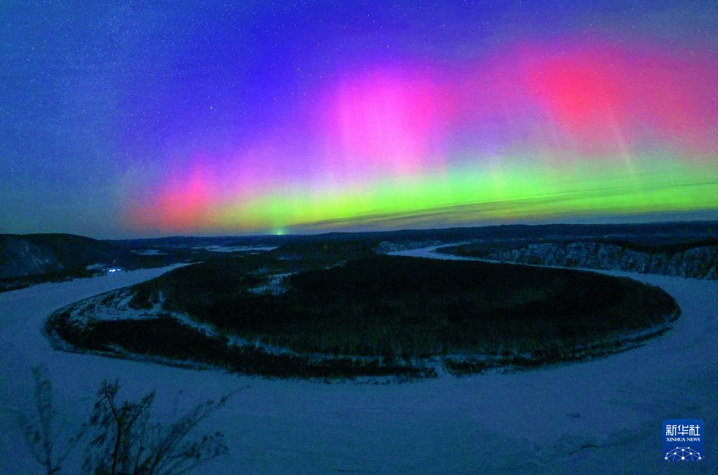 1月20日在黑龙江省漠河市龙江第一湾景区拍摄的绚丽极光。