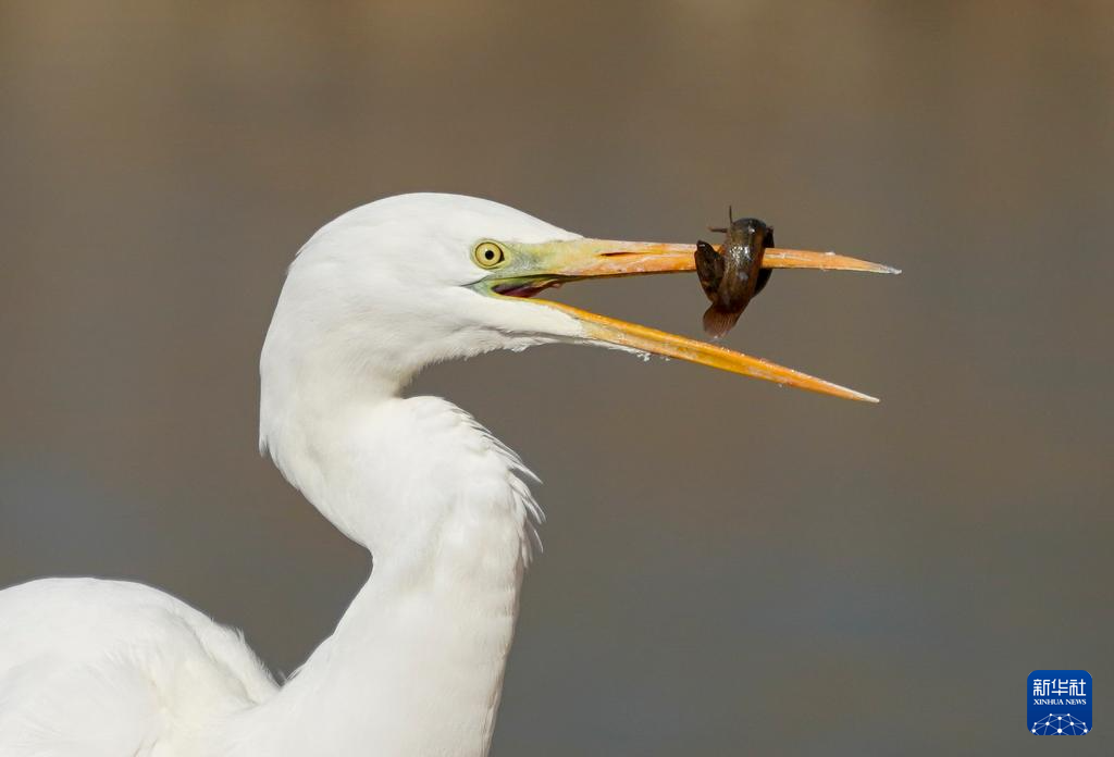 1月22日,白鹭在山西省太原市汾河湿地公园觅食。