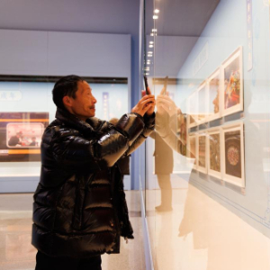 1月26日,在中国非物质文化遗产馆举行的展览现场,观众用手机拍摄展览作品。