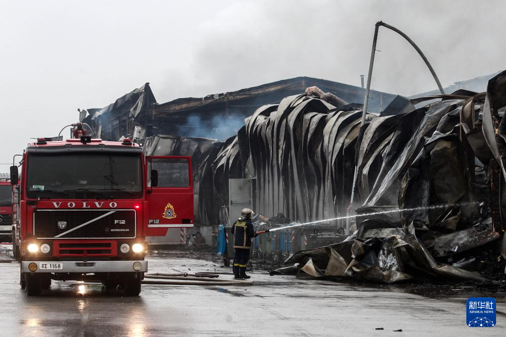 1月26日,消防员在希腊中部色萨利大区特里卡拉市的食品厂爆炸现场工作。