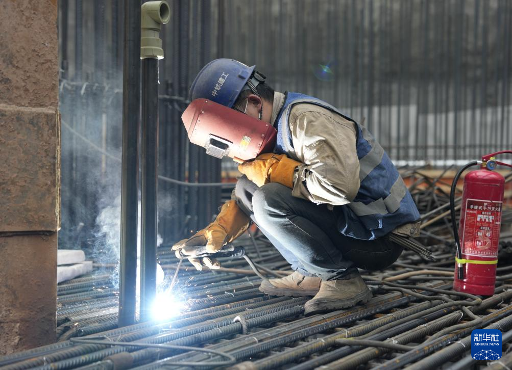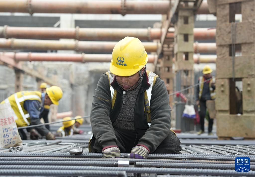 1月28日,中铁建工集团成都车站项目工程人员在工程现场施工。