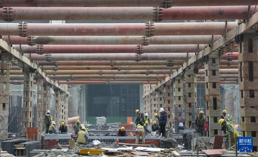 寒冬腊月,在成都车站扩能改造工程地下40米深处的施工现场,中铁建工集团成都车站项目工程人员正抓紧施工。