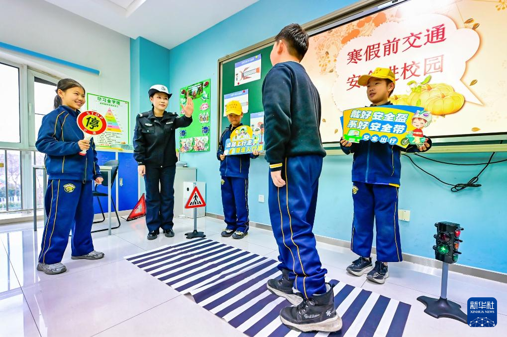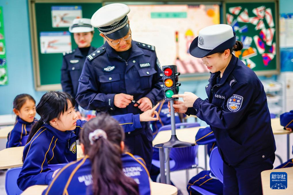 1月28日,天津市公安局滨海分局交通管理支队民警走进天津市海嘉学校,为学生讲授交通安全课,增强学生交通安全意识和自我防护能力。