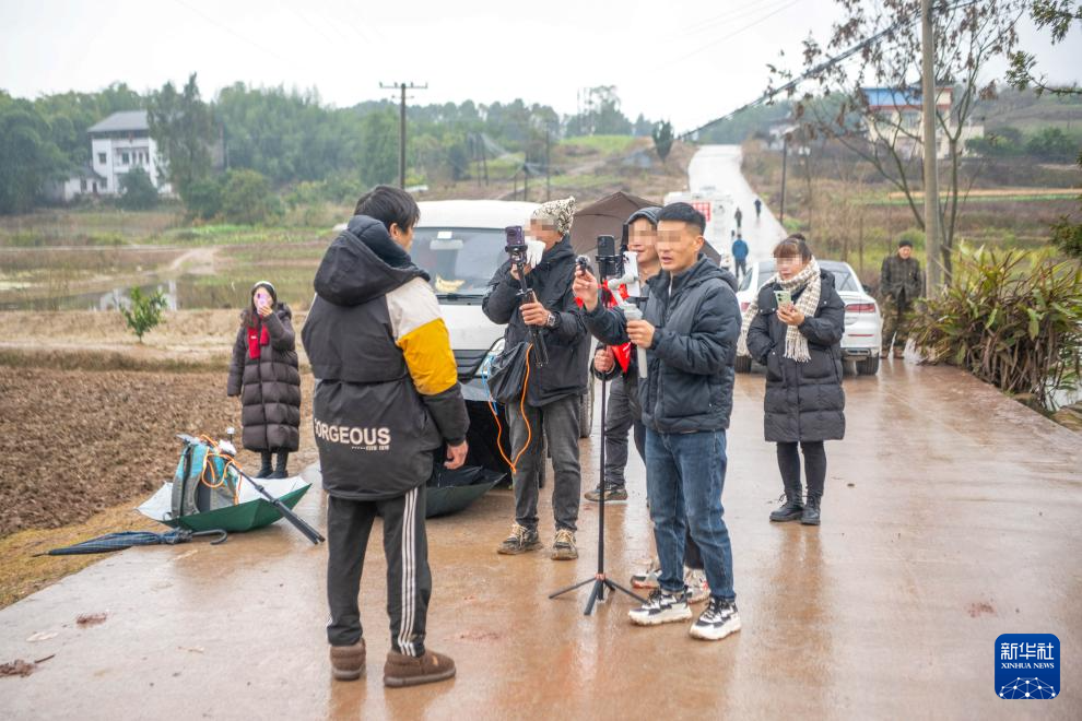 1月20日,在重庆市合川区云门街道庆福村,主播聚集在合川女孩“呆呆”家门口进行直播。