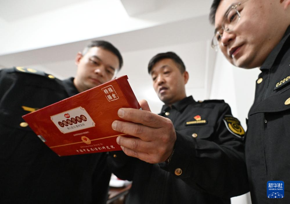 1月23日,天津市市场监管综合行政执法总队工作人员在查看涉案的直播间产品。